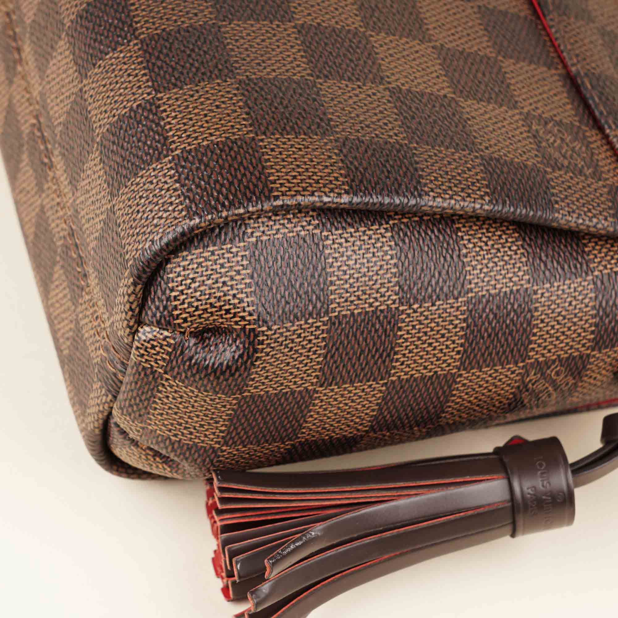 This beautiful bag is finely crafted from Damier Ebene Coated Canvas, calf leather and gold colored hardware.